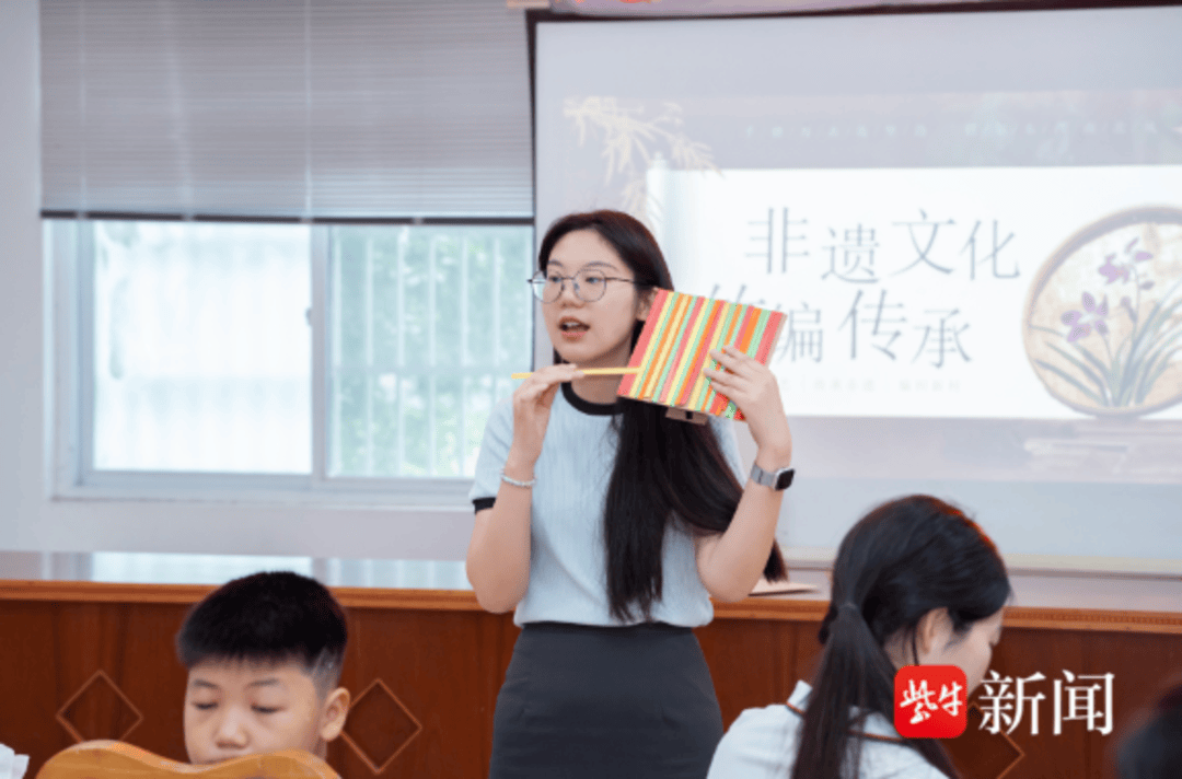 在句容后白镇槐道村校外辅导站,一场名为”指尖上的非遗”主题活动正火热进行。”拾遗美育”团的志愿者们不仅捐赠6台电脑改善电子阅览条件,更带来沉浸式传统文化课。从竹编的”挑一压一”技法到漆扇的”流彩描金”工艺,孩子们在制作竹篮、漆扇的过程中,既掌握了传统技艺,也读懂了器物背后的文化密码。