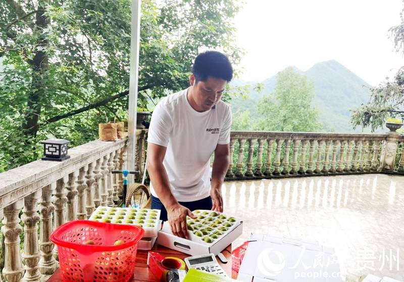 罗朝福正在打包蜂糖李。人民网记者 王秀芳摄