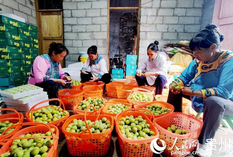 田坝村村民正在分选蜂糖李。人民网记者 王秀芳摄