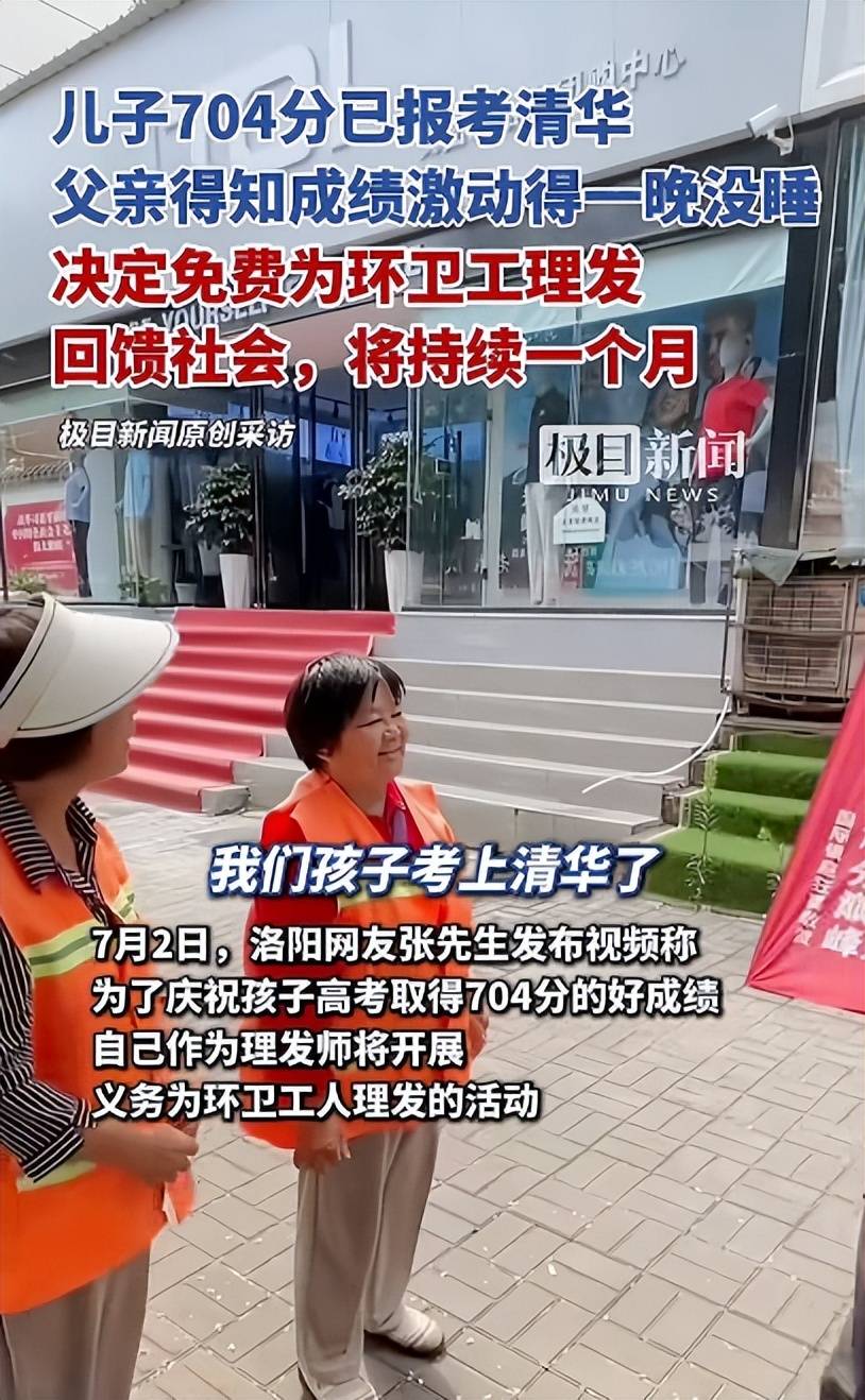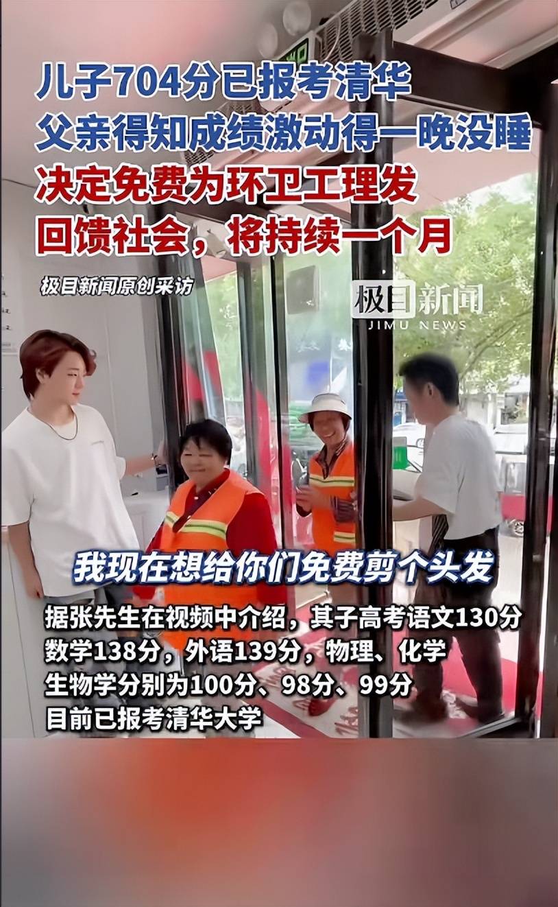 高考出成绩的那天,他像往常一样,正专注地为一位客人修剪着头发。剪刀在他的手中如同灵动的音符,上下翻飞,发出有节奏的“咔嚓”声。就在这时,儿子满脸兴奋地冲进店里,手中挥舞着成绩单,大声喊道:“爸,我考了704分!”