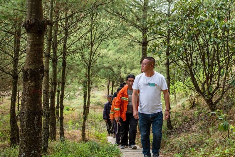 海雀村村支书、主任文军福带领护林队巡林。李学友摄