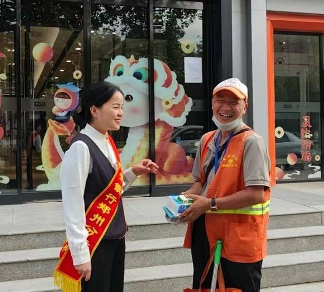 平安银行郑州分行在辖内各网点精心布置了主题宣传物料,网点准备了充足的一次性纸杯和防暑降温常用药品。同时,分行特别为环卫工人、外卖小哥等户外工作者提供了清凉饮品,设置了“夏日送清凉”专区。在银行网点内,工作人员为辛勤的劳动者递上一杯清凉的水,让他们在忙碌的工作之余,能够稍作休息,感受一份来自社会的关怀与温暖。