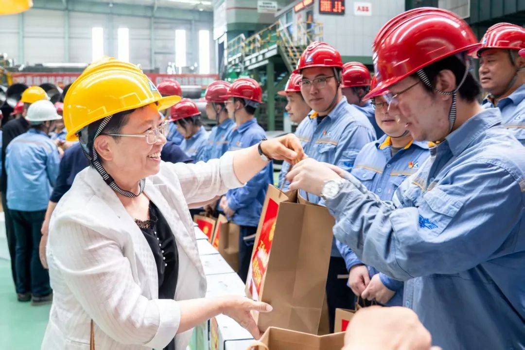 小暑已过,东北轻合金有限责任公司板带车间内热浪滚滚。贾玉梅来到职工身边,亲切慰问高温作业劳动者,为他们发放防暑降温物资,走进贾春成劳模创新工作室、工间驿站等地,与全国劳动模范贾春成、全国人大代表谢延翠等职工代表深入交流,倾听意见建议,勉励他们充分发挥示范引领作用,让更多创新成果竞相涌现。走访中,贾玉梅叮嘱各级工会组织要深入学习贯彻总书记在庆祝中华全国总工会成立100周年暨全国劳动模范和先进工作者表彰大会上的重要讲话精神,按照全总、省总的部署要求,积极开展“工会送清凉 防暑保安康”活动,充分利用工间驿站等工会服务阵地,探索运用数智化手段,让防暑降温物资发放更加精准、便捷。