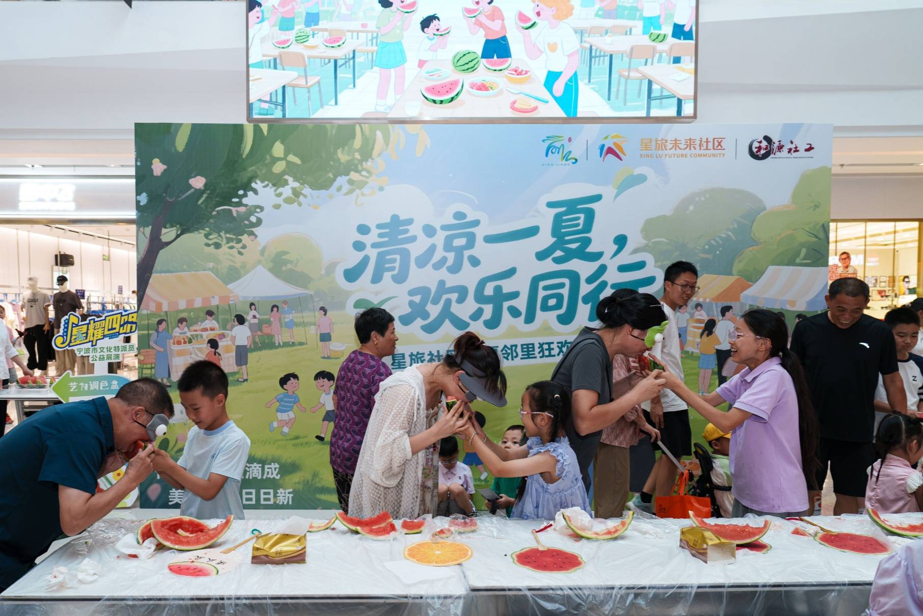 为进一步增强邻里互动、拉近居民关系,社区还设置了趣味十足的“吃西瓜比赛”、党建知识问答、亲子游戏等环节。大朋友、小朋友们围在一起比拼“谁吃得快”,欢笑声此起彼伏。在这场充满烟火气的邻里盛会里,社区还特地设置了政策宣传摊位,体重管理、绿色低碳、反诈宣传、防灾减灾等知识以“逛大集”的形式送到大家身边。居民间你来我往,在互动中更了解社区、熟悉邻里,活动现场洋溢着一派温馨、和谐的氛围。“以前只觉得社区是办事大厅,但现在越来越有‘家’的感觉了。”居民陈阿姨感慨道。
