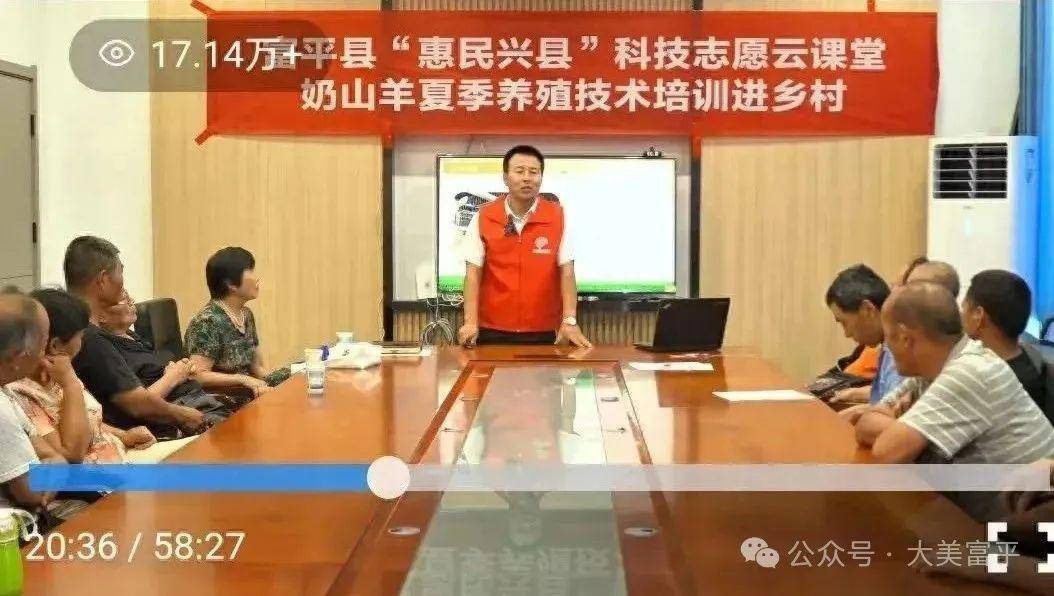 科技赋能乡村振兴,云端助力产业腾飞。7月10日,富平县科协联合畜牧中心科技志愿服务队特邀富平优乳工程联盟负责人、富平奶山羊产业服务协会专家、庄里道德讲堂公益协会副会长雷高奎走进张桥镇铁门村,开展奶山羊夏季养殖技术培训,40多名养殖户参加培训,云课堂网络点击量达17.14万人次。