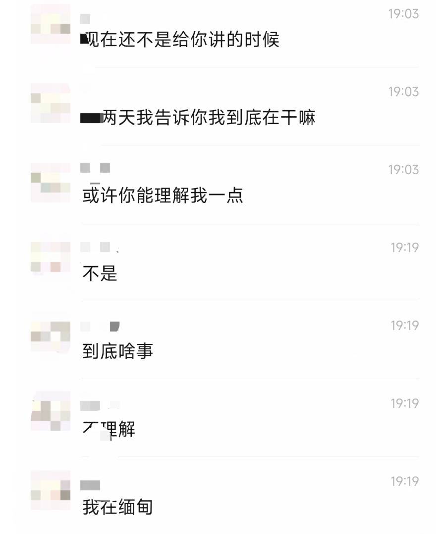 杨女士从儿子的女友那里得到消息,“他给她女友发了四个字,我在缅甸。”之后还跟女友讲,自己的人身是安全的,没有人控制他。当女友给她发缅北电诈相关新闻时,彭宇轩还表示,自己没有遭遇电诈。