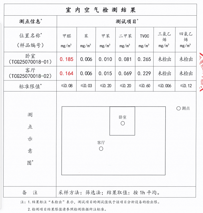 7月2日,马先生找了专业甲醛CMA检测机构,检测人员在房内检测了两个点,无个人家具区域,全部是房子本身里面设施区域,结果显示甲醛超过国家标准近三倍。为了调理身体和治疗,他已经花费了4万余元,马先生告诉记者,大部分是中药调理,西医治疗的费用只有几千元。他向房东要求退租并退还押金,但对方表示不会退押金。