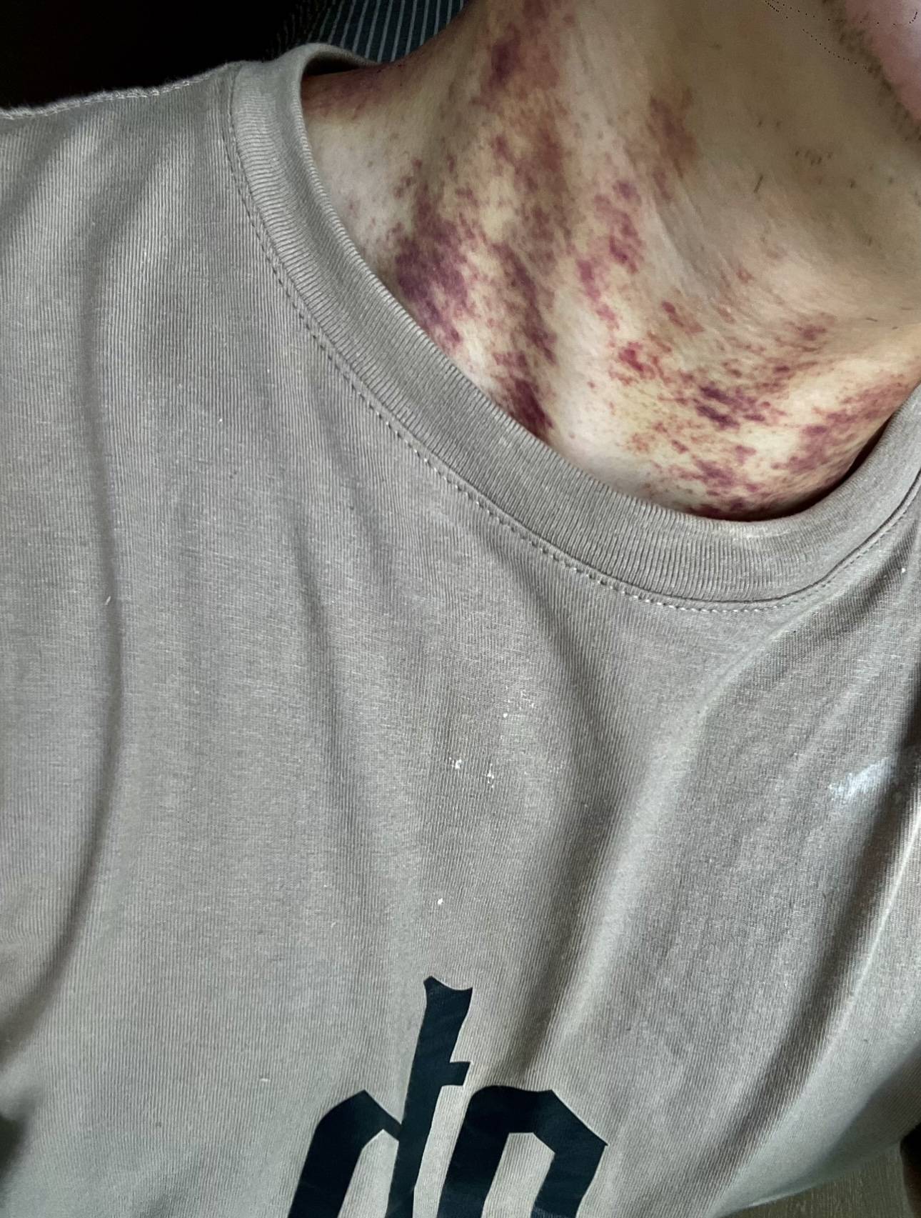 △马先生展示自己过敏的自拍照,他怀疑是租房内甲醛超标引起。