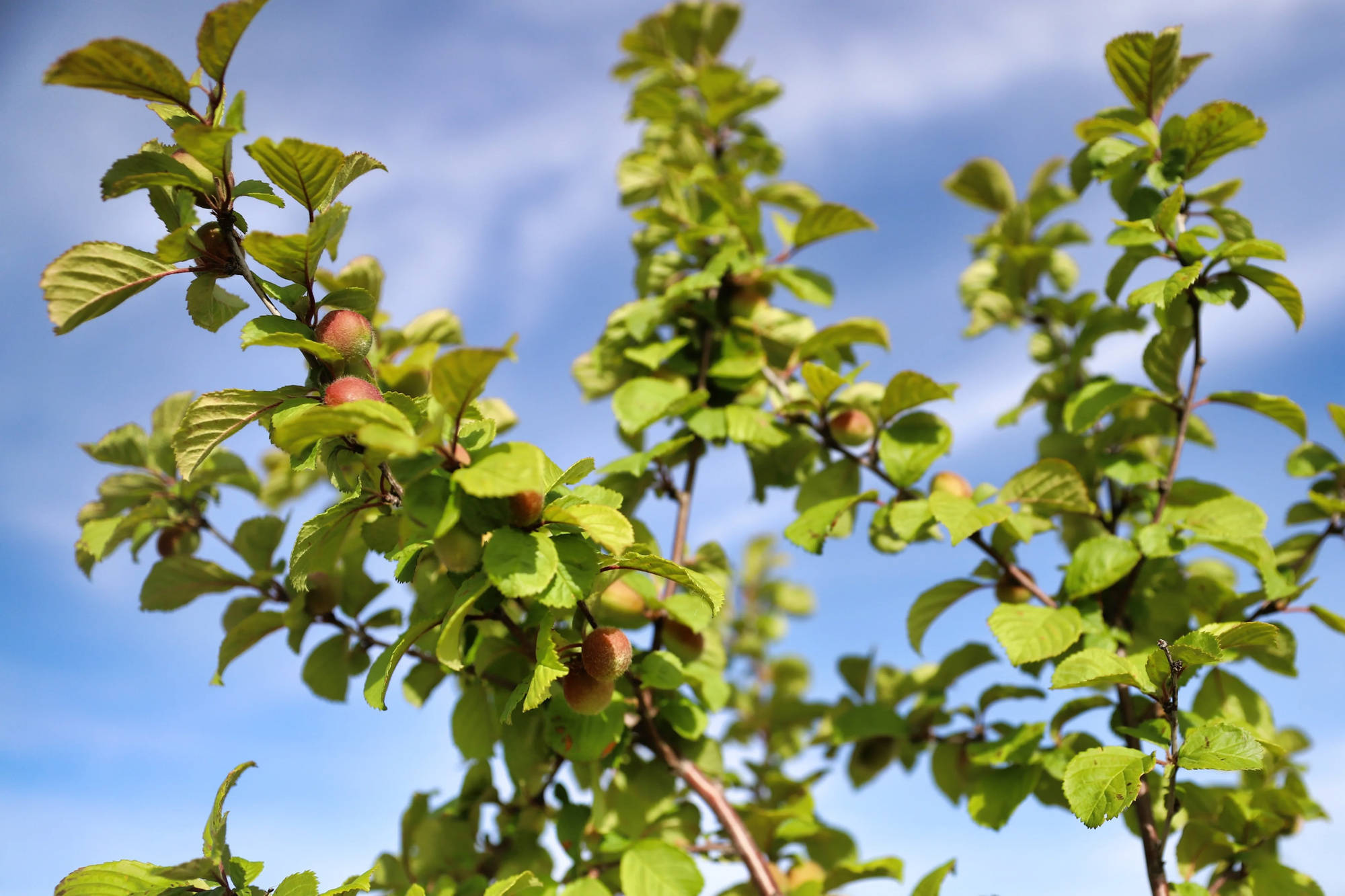 “老蔡,这才一年多,榆叶梅就挂小果子啦!”