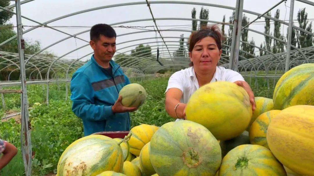 种植户阿布杜沙拉木·吐尔迪说:“我这片地约有48个大棚,主要种植哈密瓜、老汉瓜和西瓜。每个大棚产量约两吨,今年瓜的产量不错,我们从现在开始采收,预计持续到8月初,每天都有收购商前来收瓜,市场价格也好,收入比较可观。”