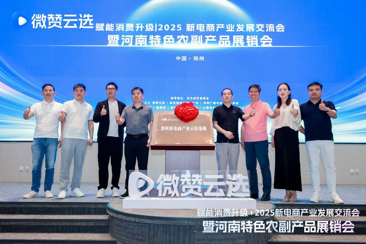 7月22日,由郑东新区管委会指导、微赞云选、新发展楷林智慧广场、河南广播电视台都市频道联合主办的 “2025新电商产业发展交流会暨河南特色农副产品展销会”在郑州举行。郑州市商务局、郑东新区投促局、郑东新区税务分局及市场监管局相关领导,河南各地市驻郑办代表、供应链企业代表及侨商会组织一行齐聚一堂,共同见证“郑州新电商产业示范基地“揭牌仪式,并共话新电商产业发展。