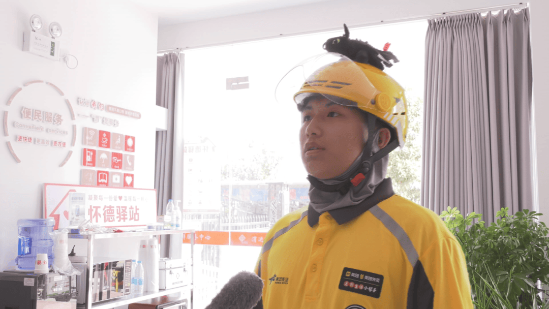 外卖员 马征:以前遇到高温天气休息都没有时间,现在在驿站还能喝水,手机能充电累了还能休息,真的太贴心了。