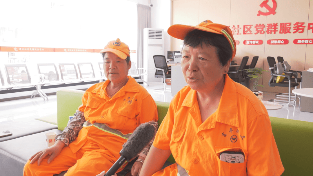 环卫工 刘小娟:这几天打扫卫生也热,特别的热,热的话到这里喝点水,吹吹空调也很方便。
