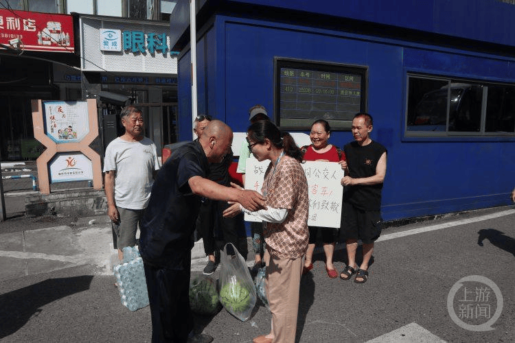 志愿者们扛着新鲜的西瓜,抬着一箱箱矿泉水,走进公交调度点,将一份份慰问品递到公交职工手中。“感谢你们平时的热心帮助,我们残疾人出行,时不时会遇到麻烦,多亏有你们……”