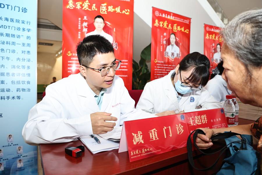 新民晚报记者在义诊现场看到,医院军人诊疗中心内人头攒动,工作人员有序引导,志愿者贴心协助测量血压、登记信息。
