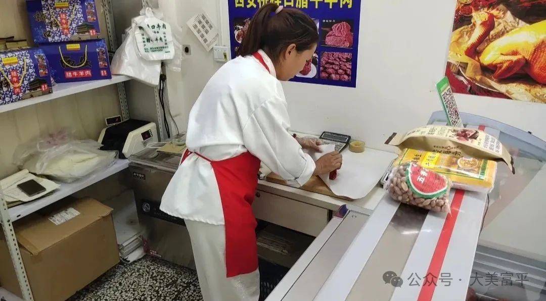 这个腊牛肉就在庄里南北大街中段,而且是正宗的西安桥梓口酱腊牛肉!