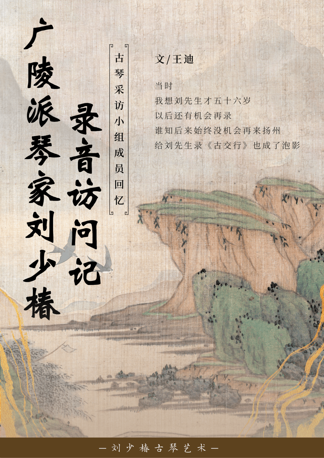 一九五六年,中央音乐学院民族音乐研究所古琴采访小组,查阜西、王迪等一行人赴全国廿个地区,对各地琴家进行访问录音。我们于三月出发,经济南、南京到镇江。原计划当天渡江去扬州,不巧赶上七级飓风,渡轮停开,只好在镇江暂住一夜。翌日清晨,我们乘船过江,到了山清水秀、美丽如画的扬州,住在古色古香的萃园。扬州市文化局的领导邀请了市政协副主席徐笠樵、江树峰和胡澍、刘少椿、胥桐华三位琴家来萃园聚会。大家畅谈如何抢救传统音乐遗产,重点是古琴音乐的发掘打谱、继承等问题。