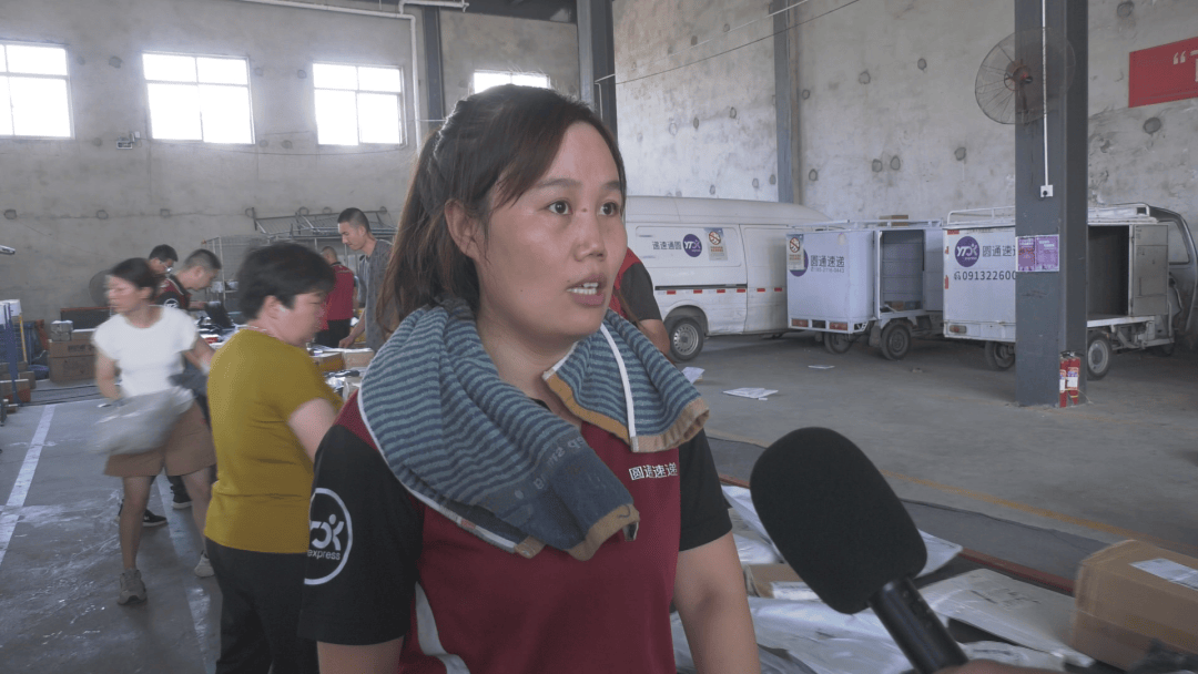 快递员 赵晓林:一天大概的话就是我们要跑两趟,大概每天就是要送三百五到四百件快递。然后这么热的天气,我们保证每一个快递,都是按照客户的要求,安全地送到客户的手中。