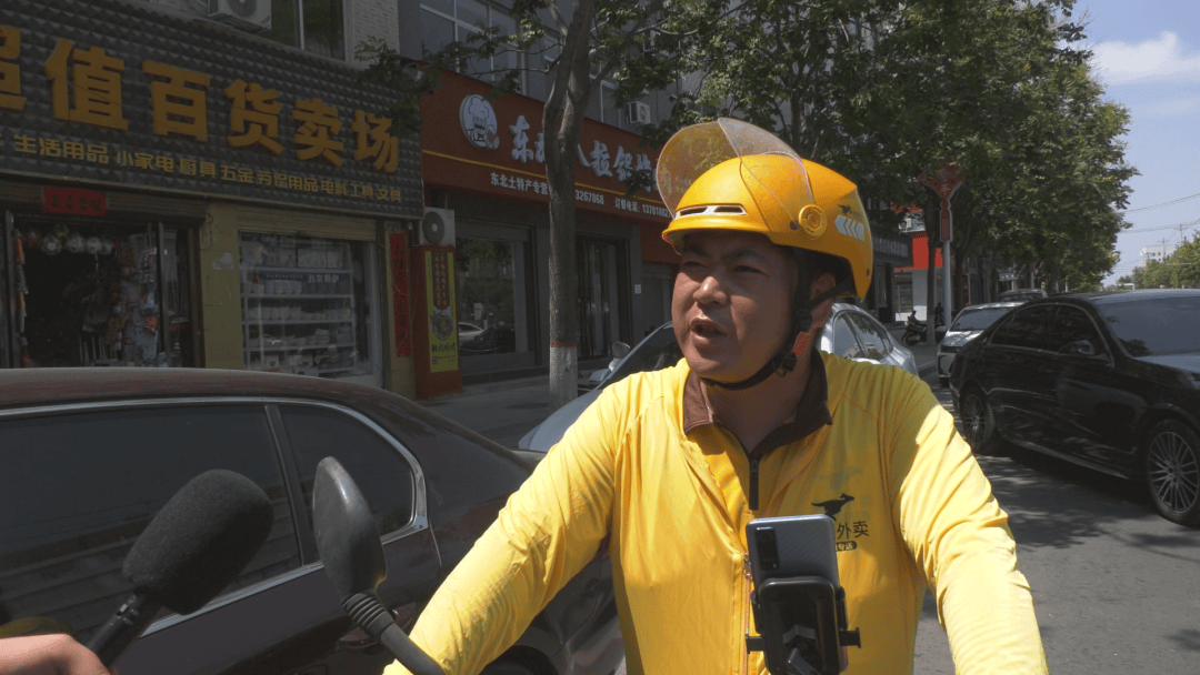 外卖员 达雷雷:我跑外卖三年多了,每天能送个90单到100多单。每次给顾客送完外卖之后,像这种大热天,有的顾客会给我们拿瓶水,我就感到心里非常暖。顾客还会说句感谢的话语,就会给人感觉特充实,特有劲儿,爬6楼都不费劲儿!