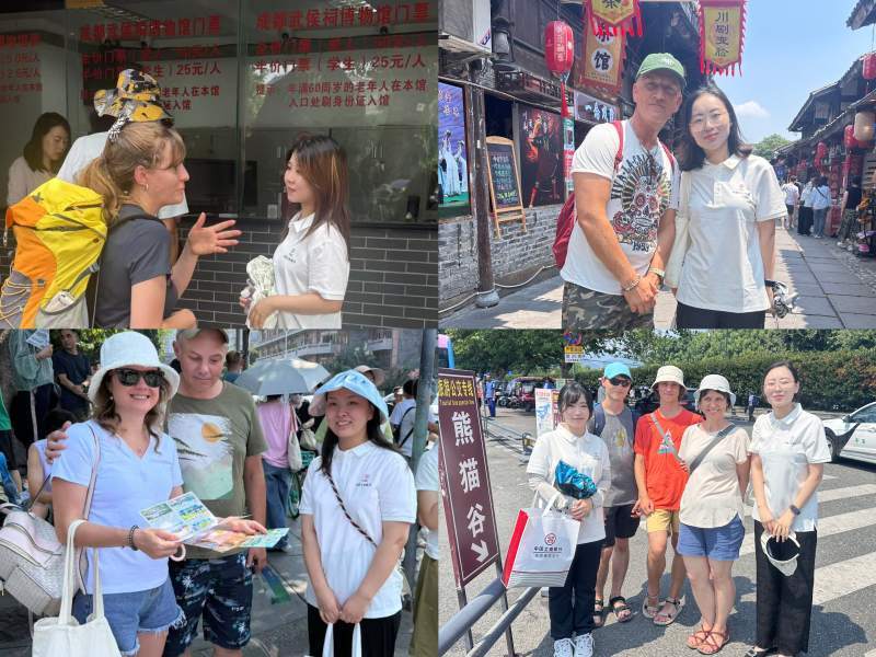 在春熙路的人流中,工商银行志愿者正拿着地图,为外籍游客规划到熊猫基地的路线,“从这里乘坐3号线到熊猫大道站,出站后有景区直通车,大约20分钟就能到。”,在为游客指路后,工行志愿者还主动分享了“错峰参观小贴士”。从武侯祠的三国文化到锦里的灯笼夜景,从玉林路的文艺小店到东安湖体育公园的赛事场馆,工商银行的志愿者们化身“活地图”,用专业的服务帮助外宾避开出行误区,高效串联起成都的各个文化地标,让他们在有限的时间里能够更深刻地感受成都城市的历史厚重与现代活力。