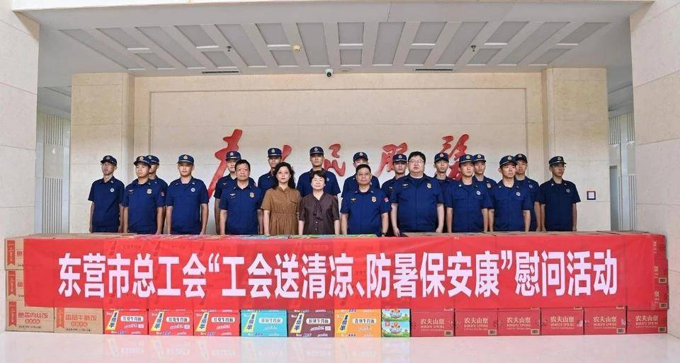 8月12日上午,东营市总工会党组书记、常务副主席许冬霞一行先后到东营市消防救援支队、东营市公安局交管支队开发区大队移动警务站开展“工会送清凉、防暑保安康”走访慰问活动。