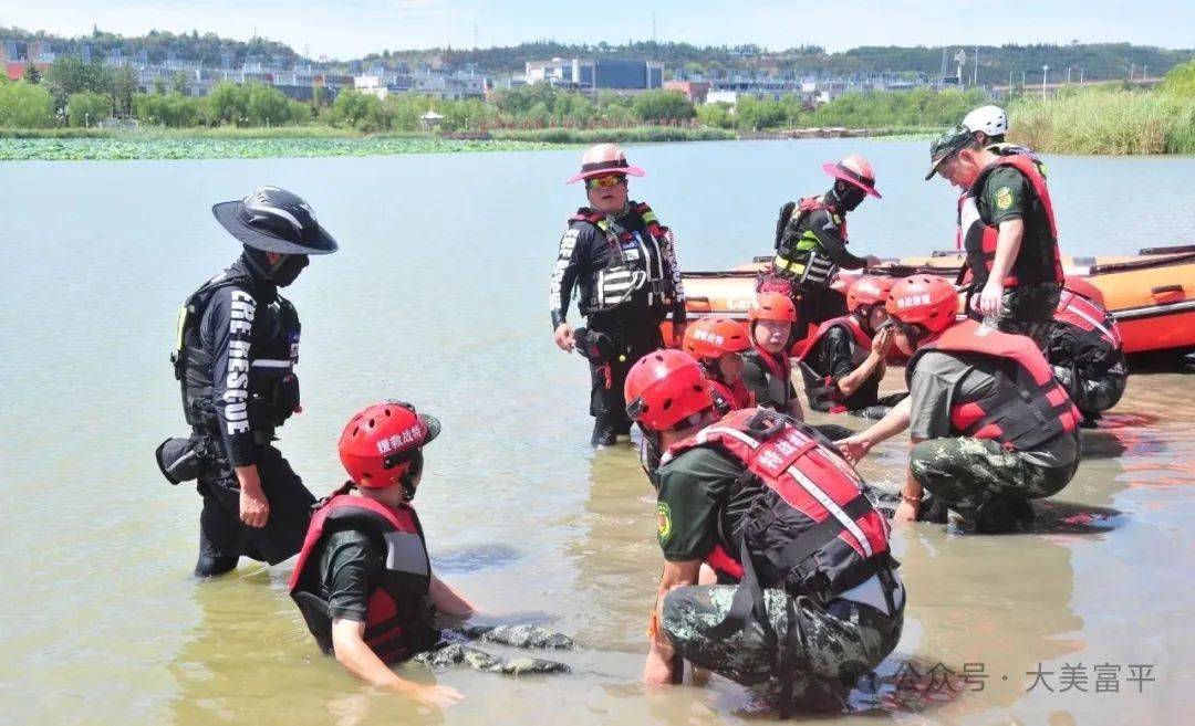 汛期当前,形势严峻。为切实提升应对突发洪涝灾害的实战能力,保障人民群众生命财产安全,8月17日,富平县退役军人应急救援志愿服务队10余名骨干队员,联合富平特战救援队精锐力量,于石川河水系区域组织开展了一场贴近实战、科目丰富、协同高效的防汛应急救援综合演练。