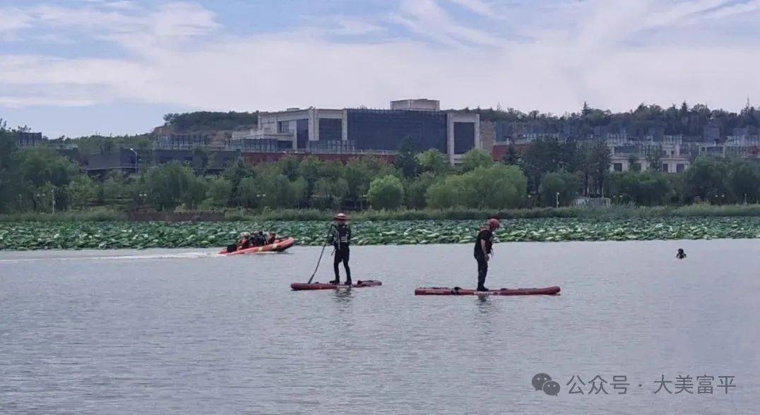 2.水上编队搜索与救援:多艘冲锋舟在水流湍急的模拟水域展开编队航行,进行水面搜索定位。针对“落水群众”实施精准救援,重点演练了抛投救生圈、活饵救援、舟艇快速抵近等多种技术,队员动作规范、配合默契。