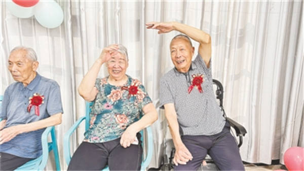 活动伊始,启明社工和敬老院的工作人员为老夫妻们佩戴喜庆胸花,《牵手》等经典老歌缓缓流淌,温馨又浪漫。院里104岁的汪奶奶由工作人员搀扶着来到活动区,她握着每对夫妻的手送祝福:“你们相守这么多年不容易,要好好的!祝你们比翼双飞,越飞越高,日子比蜜还甜!”