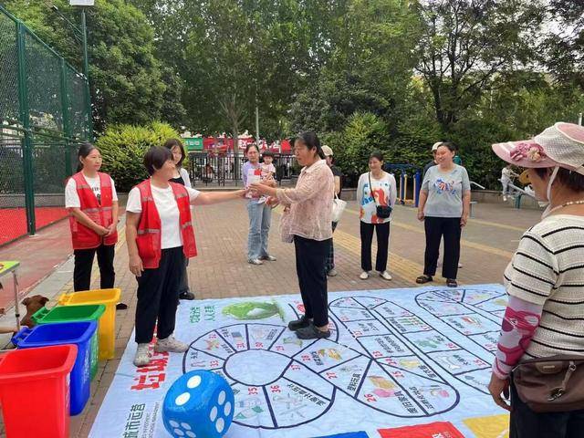 活动现场,地面铺设的超大飞行棋棋盘格外醒目,格子里不仅有“可回收物投放要求”“过期药品如何处理”等知识点,还设置了“回答正确前进2步”“混淆分类后退1步”等互动规则。参与者每走一步都要“过知识关”,孩子们拉着家长的手投掷骰子,遇到问题时认真思索,答对后欢呼雀跃,答错了也不气馁,跟着工作人员再学一遍。现场不时响起“这个易拉罐是可回收物!”“废灯管属于有害垃圾哦!”的讨论声,学习氛围轻松又热烈。
