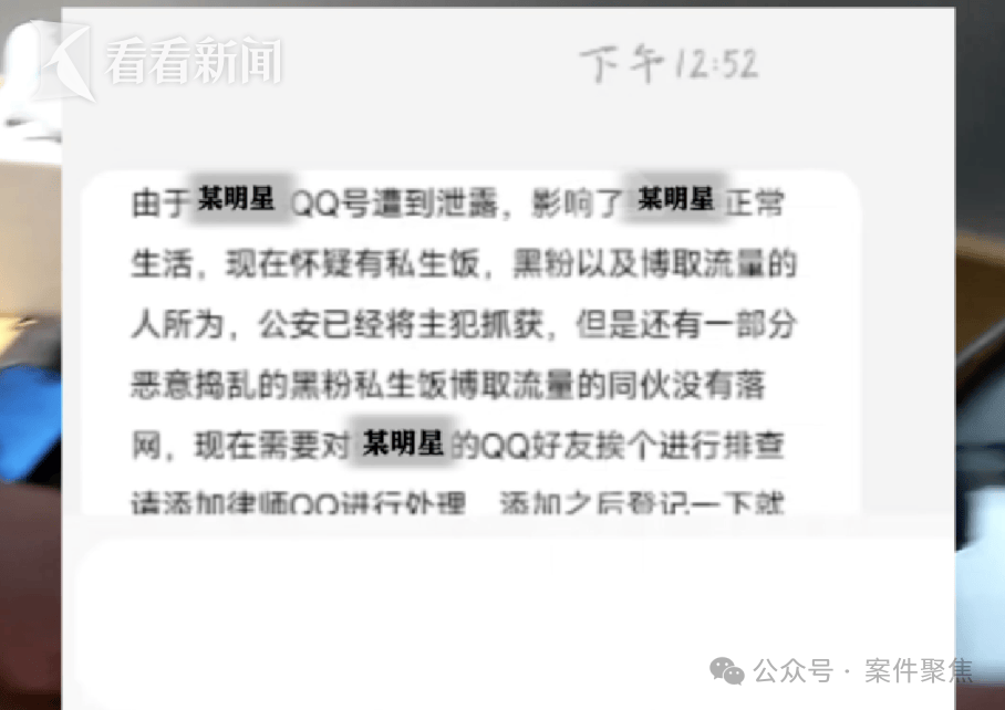 2025年8月,小李与父亲来上海游玩。在去景点路上,小李刷着自己喜爱明星的相关短视频,看到某条视频下评论区中一图片内容,赫然写着该明星私人QQ号,于是小李添加所谓的该明星私人QQ号码并联系。对方同意好友申请后,称小李泄露明星私人账号并已聘请律师排查,指示小李添加“律师”QQ号码对话联系。