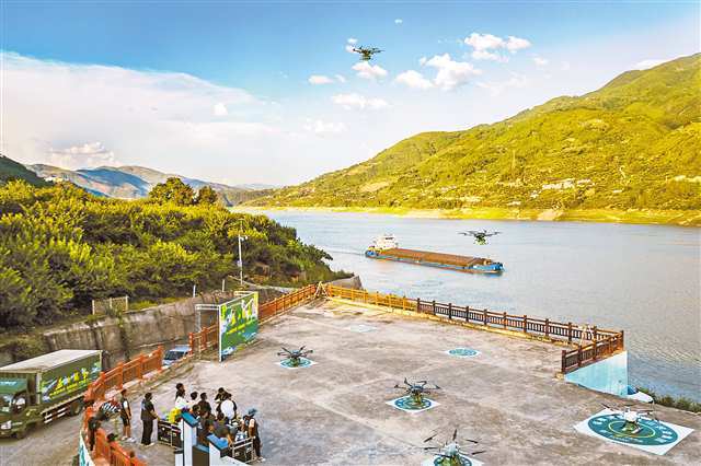 | 七月五日,巫山曲尺乡,无人机跨江运输巫山脆李。记者 尹诗语 摄\视觉重庆 |