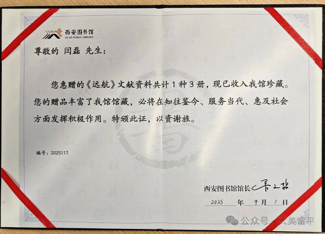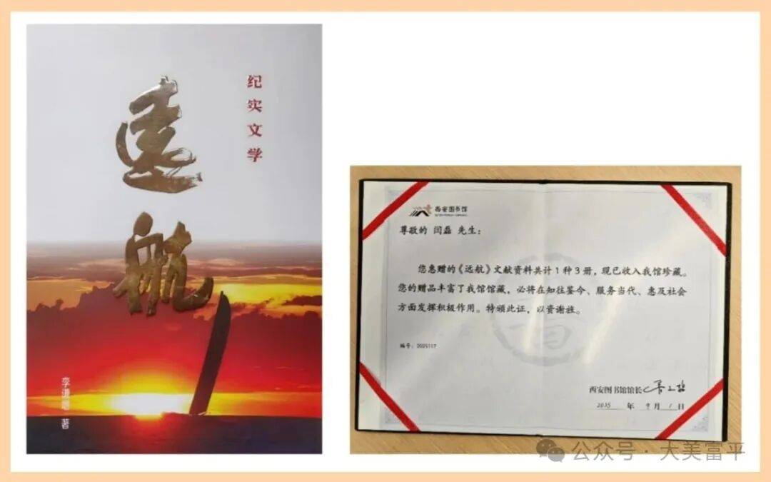 2025年9月1日,陕西富平农民作家李谦增长篇纪实文学《远航》一书喜获西安图书馆永久收藏!