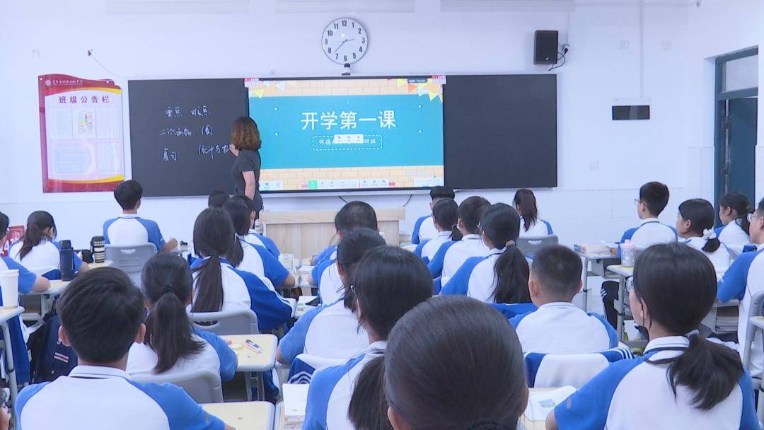 怀德初级中学九年级教师 王蕾:通过开学第一课,希望帮助同学们认识到九年级毕业班的重要性,尽快调整状态,完成身份的转化,引导学生制定计划,充分利用时间,认真对待每节课,同时告诉大家九年级并不可怕,我们每一位老师都会随时关注他们的状态,帮助他们解决问题,与他们并肩作战。