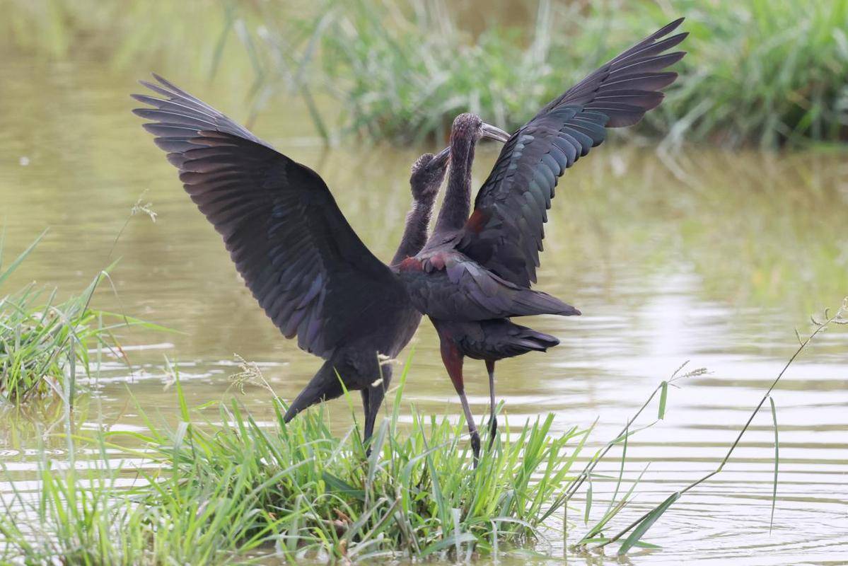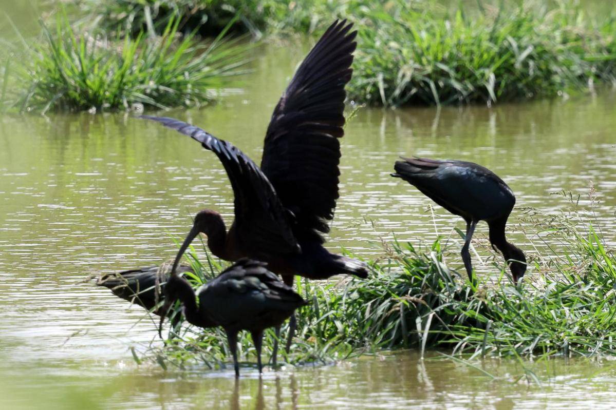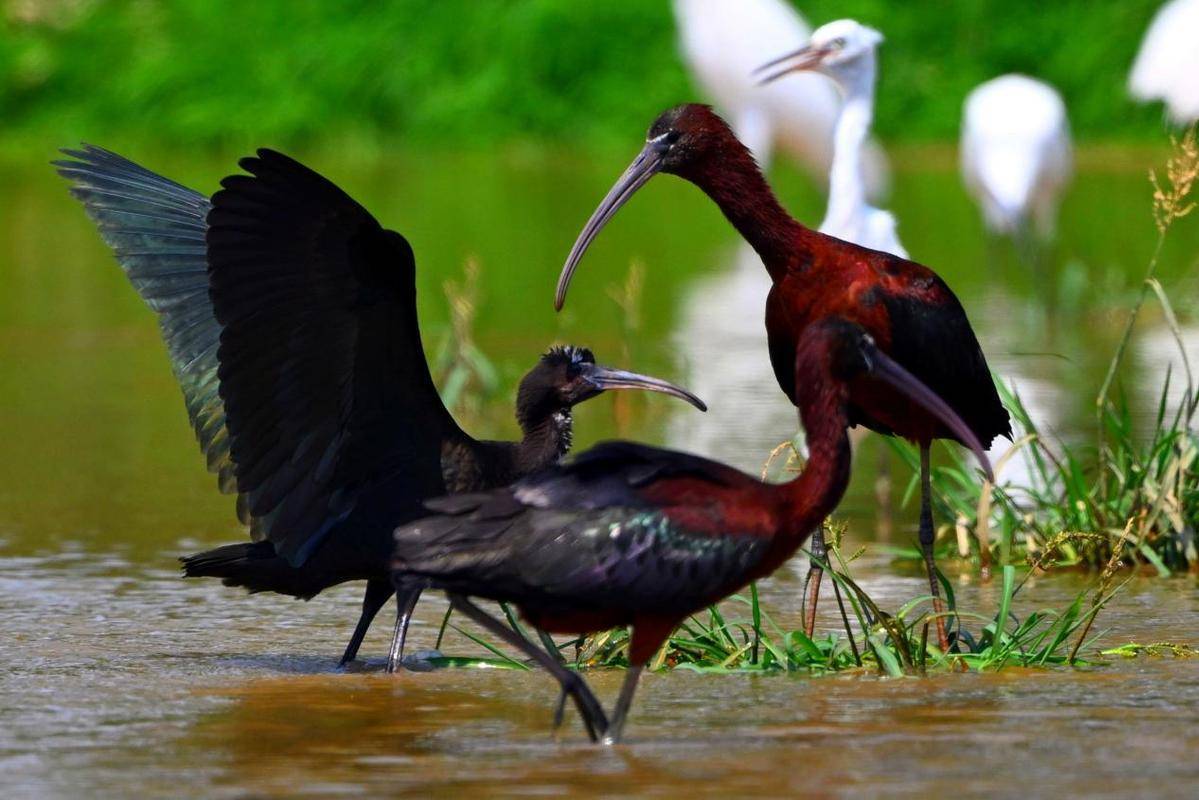 彩鹮是国家一级重点保护野生动物,主要栖息在河湖及沼泽附近,有时也会到稻田中活动。彩鹮在我国分布数量极少,《中国濒危动物红皮书》一度宣布其在中国绝迹。