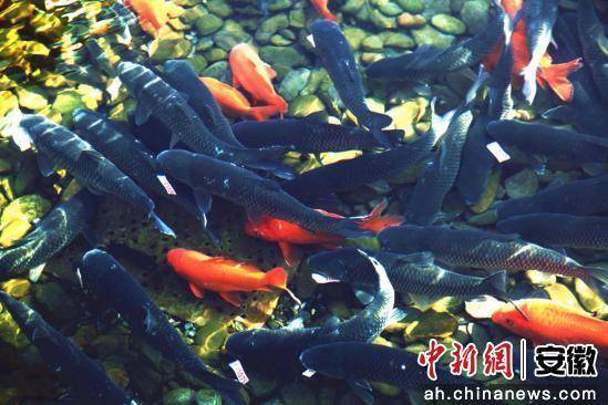 在板桥乡梓坞村,有条55岁高龄的“鱼王”,时常引来游人拍照打卡。“这条草鱼是1970年放进鱼塘的,那年我女儿出生,放下去的时候只有半斤重,现在大概有七八十斤重了。”鱼塘主人汪长生介绍,“鱼王”吃的和普通鱼没什么两样,都是一天两顿,早晚投送野生茅草、玉米、南瓜等果蔬。“要说秘诀,就是我们这儿的山泉水无污染、纯天然,并且鱼塘的进水、出水保持平衡,形成人养鱼、鱼养水的生态循环。”他说。