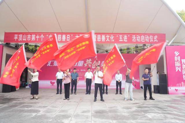 活动中,主办单位代表共同启动慈善文化“五进”活动。随后,平顶山市民政局、市慈善总会等相关负责人分别向“进机关”“进企业”“进乡村”“进社区”“进家庭”五支宣传小分队代表授旗。