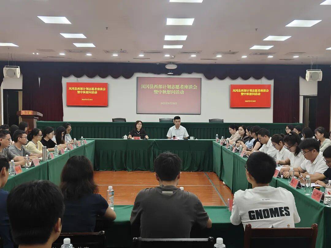 在中秋、国庆来临之际,为进一步做好凤冈县西部计划志愿者的管理和服务工作,深入了解西部计划志愿者的工作和生活状况,增强西部计划志愿者的凝聚力和归属感。9月18日上午,凤冈县组织召开2025年西部计划志愿者座谈会暨中秋慰问活动。县委副书记高横、团县委班子成员、凤冈县全体西部计划志愿者共50余人参加。