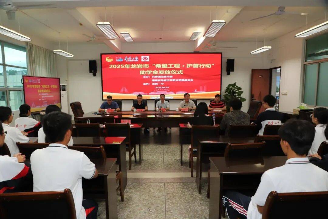 为给家庭经济困难学子送去关怀,进一步加强“大爱龙岩”新时代精神文明品牌建设,9月24日下午,由共青团龙岩市委、福建省龙岩市李新炎慈善基金会联合主办,龙岩一中承办的2025年龙岩市“希望工程・护苗行动”助学金发放仪式及座谈会顺利举行。共青团龙岩市委副书记郭朝龙,龙岩市教育局党组副书记、龙岩一中党委书记刘炳河,龙岩市希望工程服务中心主任马淼斌,龙岩市李新炎慈善基金会副秘书长吕洪荣出席本次活动,龙岩一中、龙岩二中团委负责人及两校受资助学生参加了本次活动。活动由龙岩一中副校长张斌主持。