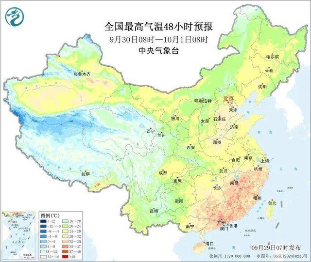 今天至国庆假期前半段,影响我国的冷空气势力弱,中东部大部气温偏高,华北、东北多地白天最高气温将超过25℃,最低气温在15℃以上。未来几天,北京、沈阳最高气温在28℃左右,总体体感温度适宜,以晴天居多。