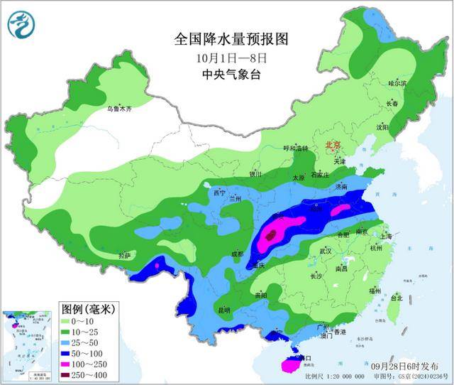 气象部门提醒,广西、云南等地部分地区今天将有强降雨天气,公众请尽量避免在强降雨时段外出,出行留意交通安全。今明两天,四川东北部、陕西南部等地降雨连连,10月1~4日,陕西南部、四川盆地东部到黄淮、江淮一带还将有一次较强降雨过程,陕南、川北8月下旬以来降雨几乎不断,土壤接近饱和,需注意防范滑坡、泥石流等次生灾害。