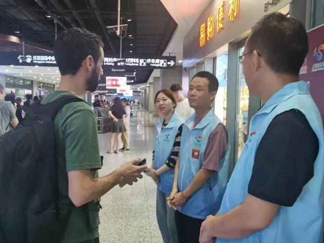 傍晚的虹桥火车站,广播里循环着国庆安全提示。区人社局志愿者奚嘉衡突然被轻轻拍了下肩膀,抬头一看,是位外国男子,手里举着手机,屏幕上写着“网约车上车点”,脸上满是困惑。“Hola?(你好?)”奚嘉衡试着用同样的语言先打了声招呼,男子眼睛一下子亮了,连忙点头,他展示着手机里的网约车订单,嘴里念叨着“滴滴”“pick-up”。接过手机,快速确认了上车点方位。他一边用手比划方向,一边用简单的英语解释:“About two-minute walk from here.”男子对着志愿者比了个“OK”,用不太标准的中文说:“谢谢!”——原来一句简单的外语问候,能让跨越语言的求助,变成一次温暖的相遇。