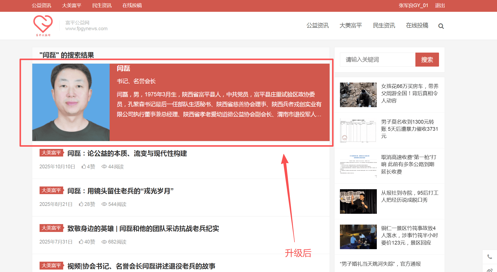 富平公益网讯 富平公益网于11日完成重大功能升级,核心优化聚焦会员信息展示板块,为广大阅读者提供更清晰、全面的协会成员信息查询。