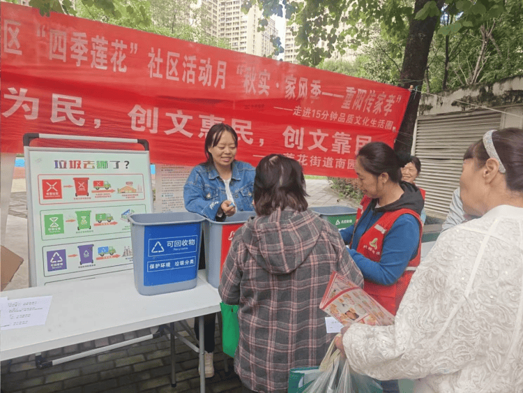 活动采用“理论+实践”的双轨模式。社区工作人员和志愿者组成的宣讲队,穿着印有“巴南区垃圾分类指导员”的红色马甲,向居民发放垃圾分类宣传手册,用通俗易懂的语言讲解分类标准、投放要求。针对老年居民较多的特点,志愿者们耐心举例,让大家快速掌握分类要领。