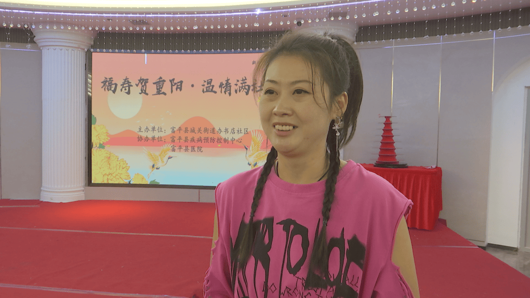 城关街道书店社区居民 张凤鸣:参加这次活动,感觉都年轻了好多,主要是党的领导好,社会好,社区确实把工作做到我们心坎上了,我感觉心情舒畅,很高兴。