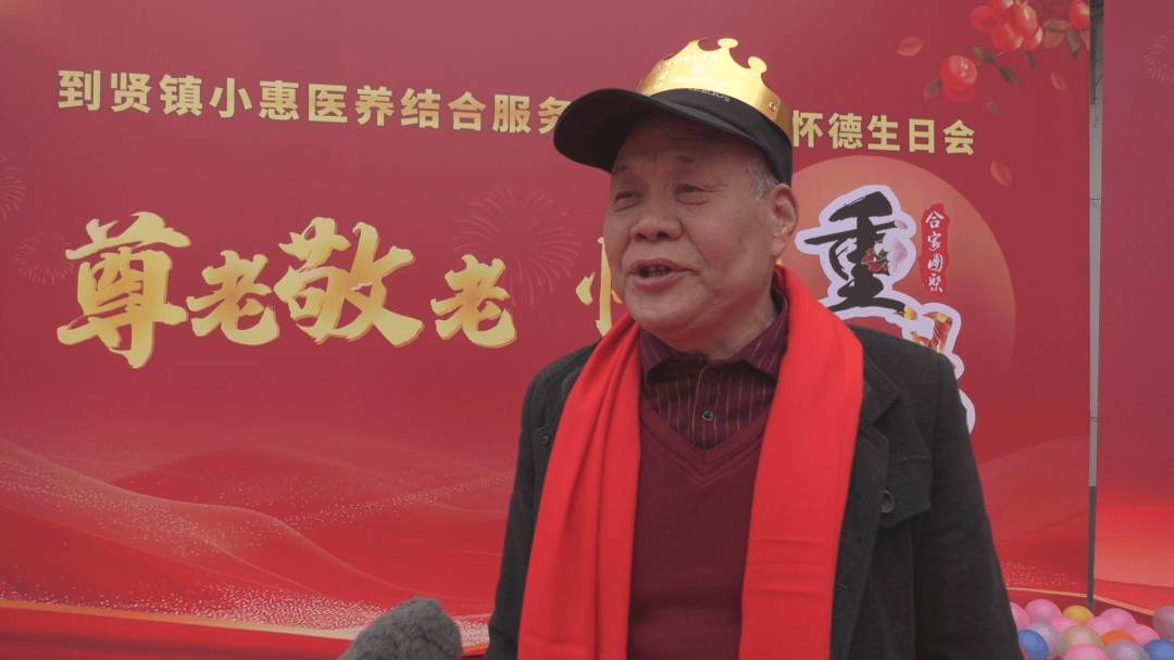 到贤镇村民 宋忠印:小惠卫生院给我们老人办的怀德生日会,叫我们吃蛋糕、看节目,给我们老人办这个养老院,我们老人特别高兴,使我们老人今后老有所养、老有所依、老有所乐、老有所安,老人们特别高兴。