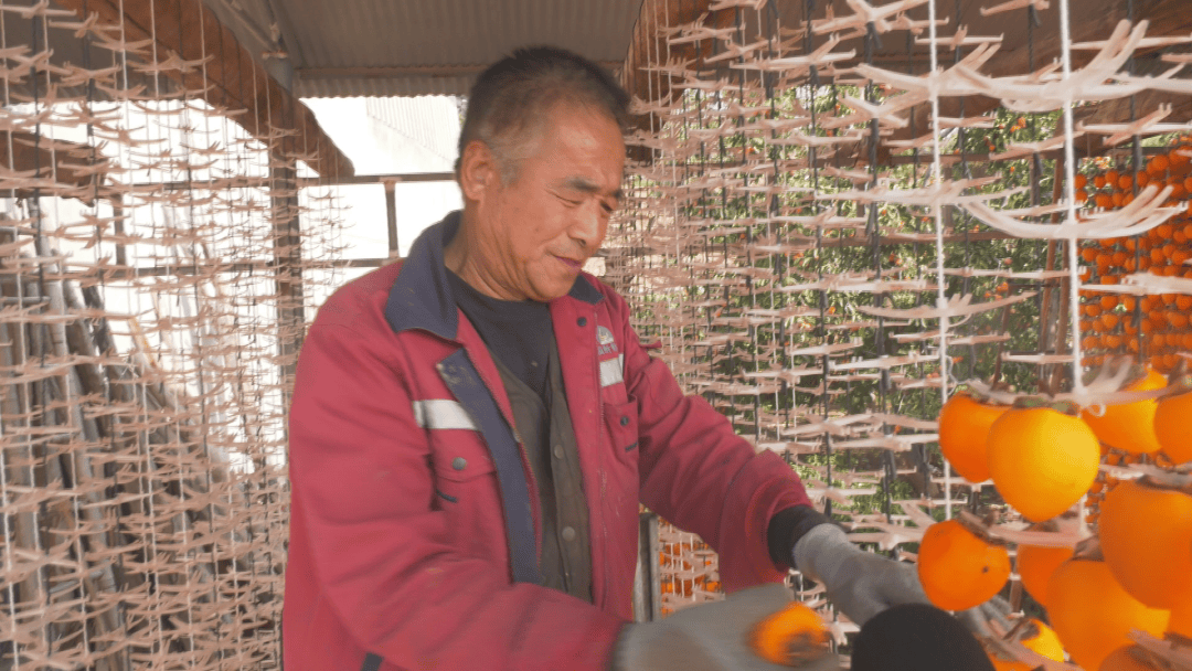 富平县华丽柿子专业合作社职工 杨克毅:我在合作社每个月能挣4500块钱,家里也种着1亩多柿子。能顾着老小,干了两年多了,工作也稳定,心里也踏实。