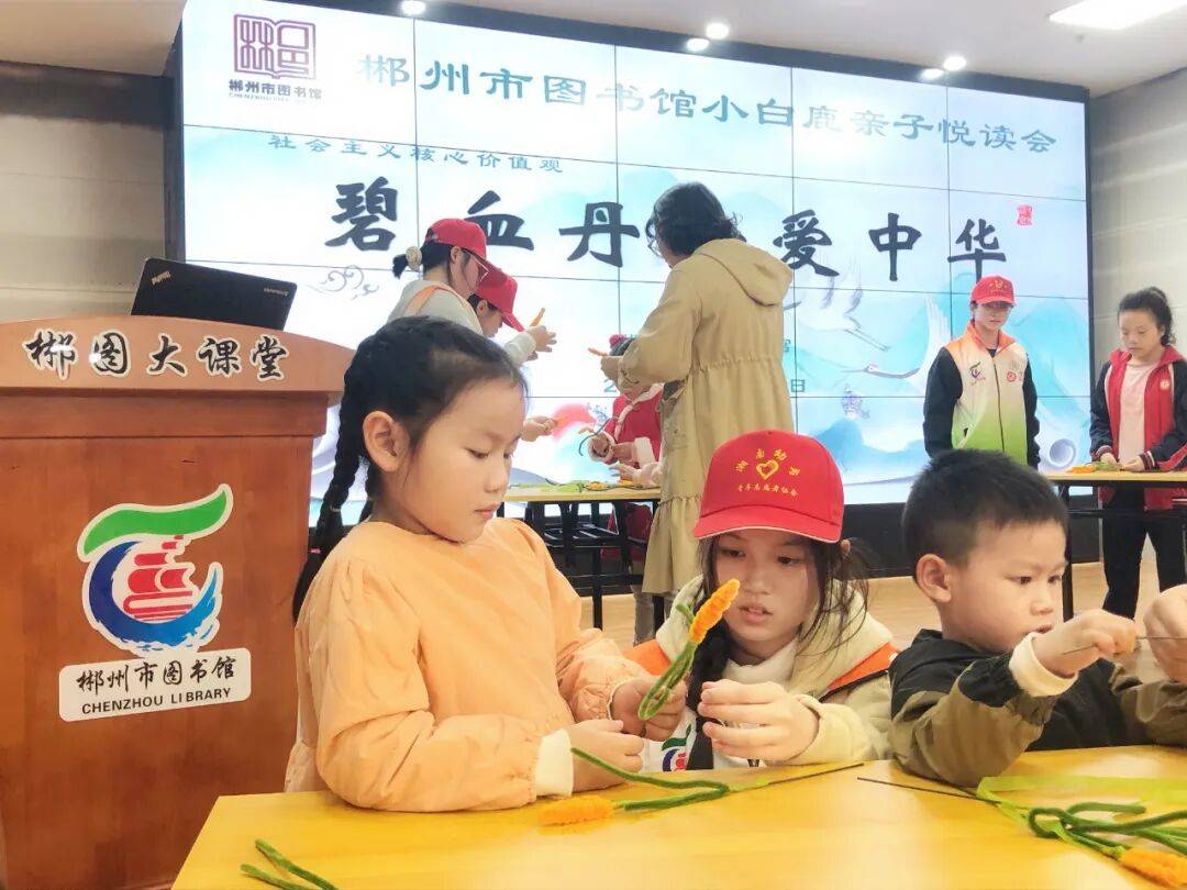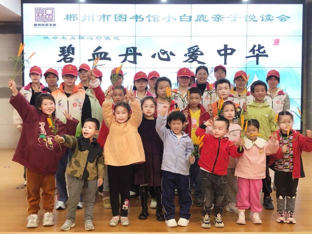 为弘扬社会主义核心价值观,强化未成年人爱国主义教育,11月1日至2日,小白鹿亲子悦读会“碧血丹心爱中华”主题活动在市本馆、苏仙区图书馆、福地少儿馆、王仙小学露泉分馆、市直属机关幼儿园幼苗分馆开展,150组亲子家庭、460余市民读者参与活动。