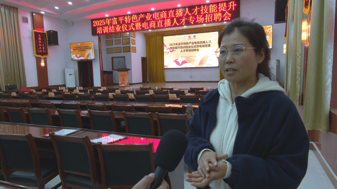 11月5日,2025年富平特色产业电商直播人才技能提升培训结业仪式暨专场招聘会在富平县农广校举行。