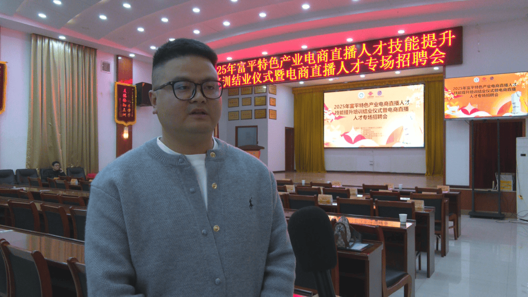 富平县人社局副局长 雷航亮:此次我们将电商直播人才培训结业仪式与专场招聘会同步举办,核心目的是通过提升电商直播人才的技能水平,实现技能与岗位精准匹配、培训与就业无缝衔接,帮助重点就业群体拓宽增收路径,切实解决群众就业难题与企业用工需求。未来,我们将持续创新职业技能培训模式,结合市场需求优化课程设置,让更多群众通过技能提升找到稳定工作,为县域经济发展注入更多人社力量。