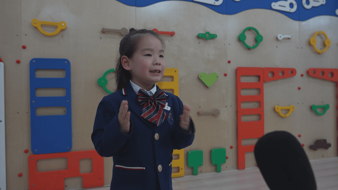 福尼斯幼儿园学生 刘舒苒:我的园长妈妈最好了,她经常说她最喜欢和我们一起玩游戏了,还给我们讲好听的故事。